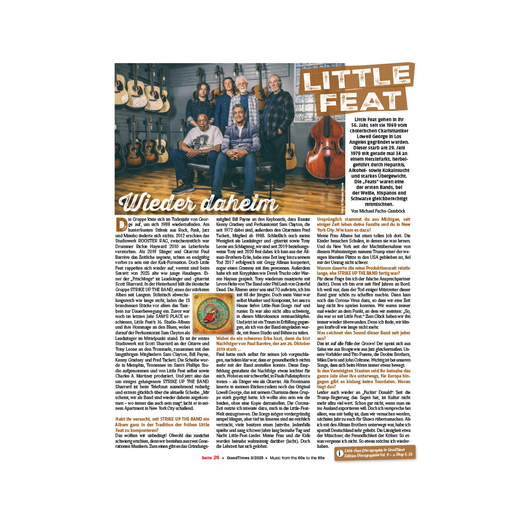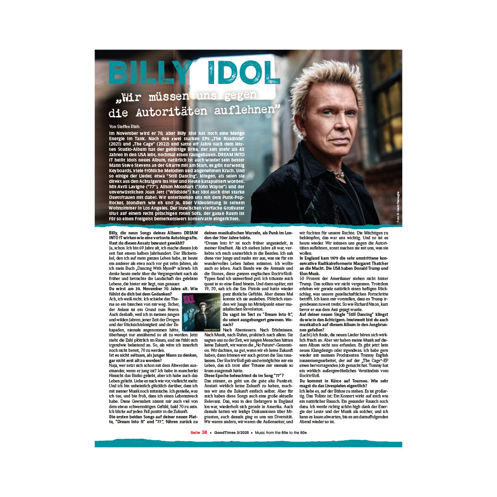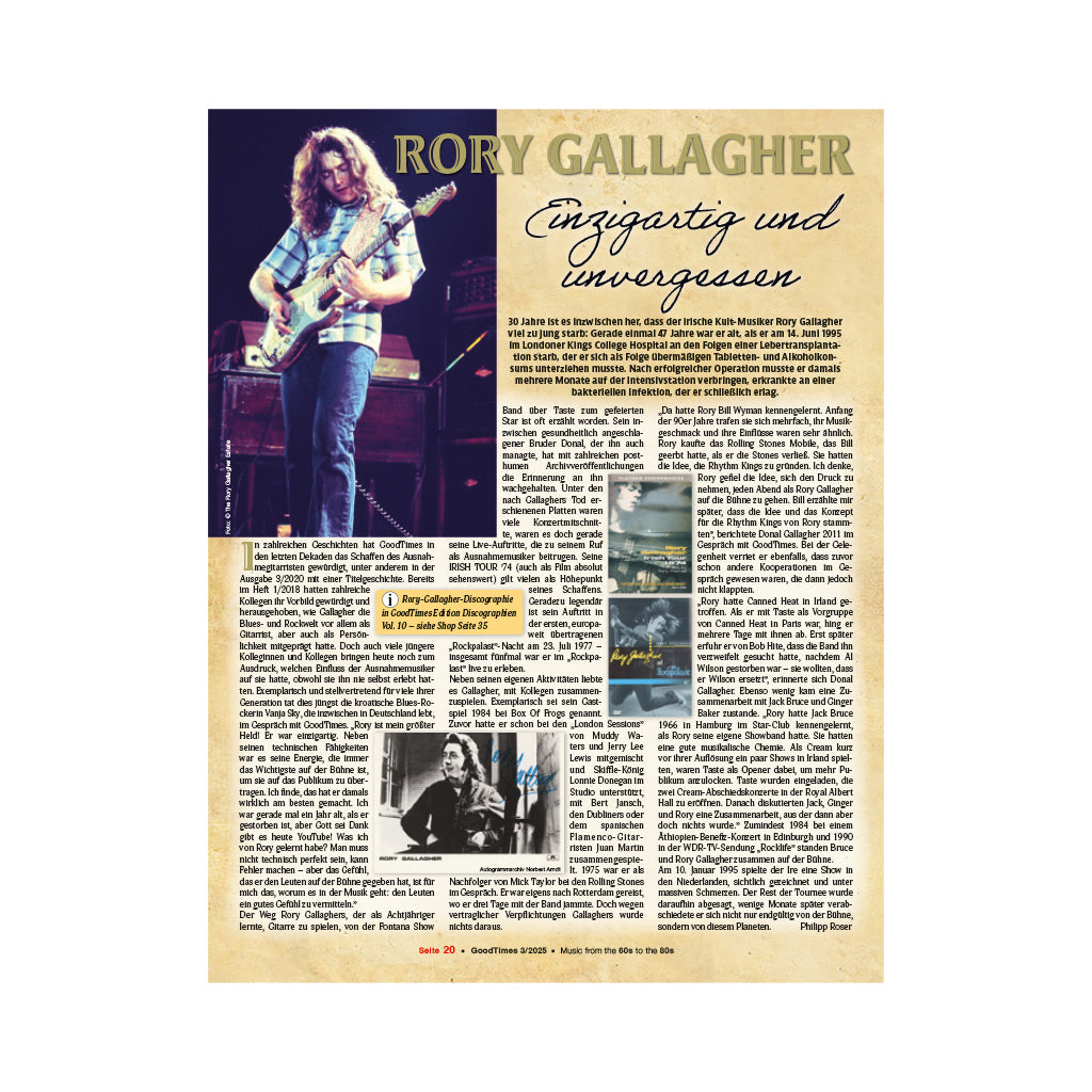 Runaways - Die Tortur auf dem Weg zum Rockstar | Creedence Clearwater Revival - Album Cover Art Galerie #55: COSMO’S FACTORY | Rory Gallagher - Einzigartig und unvergessen - | Chicorée - Nach vier Jahrzehnten mit neuer EP und einem Reuniongig zurück - | Tommy – The Movie - Ein Film im Spiegel seiner Zeit | Peter Baumann - In einer anderen Stratosphäre | Santana - Der Tod ist nicht das Ende | Candice Night - Meeres-Romantik | Little Feat - Wieder daheim | Flower Kings - All You Need Is Love | Adrian Gurvitz - Für mich geht es stets um die Bedeutung der Songs! | Dead Daisies - Auf musikalischer Entdeckungsreise | Billy Idol - Wir müssen uns gegen die Autoritäten auflehnen | Richard Thompson - Rückkehr nach langer Abstinenz | Robert Cray - Blues, Murmeln und Limbo-Rock | Cosmic Cathedral - Im Gotteshaus des Prog | Freedom - 40 Prozent Procol Harum auf neuen Wegen | Robin Trower - Nicht Blues allein | Pete York - Humor & Rhythmus im Jazz | Tim Buckley - Engelsgleiche Stimme mit fünf Oktaven | Dave Stewart - Die Unersetzbare ersetzen | Gianna Nannini - Janis Joplin hat mein Leben verändert! | Prinzip - Kulturniks verordneten Heavy-Rock-Trio einen Weichmacher | Schwarzbrenner - 30 Jahre Blues Rock plus Lyrik | O.R.k. - Hart, nicht herzlich | Kris Gray - Vielseitiger Tausendsassa | The Herd - Zu viel Frampton, zu viel Management und viel zu wenig Band | Here Comes Summer - Sehnsucht nach Sommer | Cat Lion - Mit dem Cowboyhut durch Österreich | Girlgroups in den 60s – Teil 12 - Baroque, Soul, Psychedelic – Girlgroups im Wandel | HiFi-Tipps – Folge 6 - Standlautsprecher | ... zuguterletzt: John Helliwell - Suzanne Vega - Russ Ballard