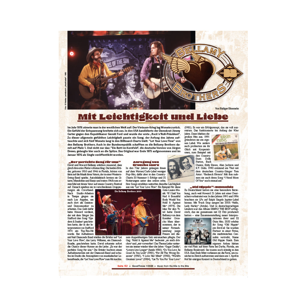 200. Ausgabe GoodTimes - Rubriken, Sachlichkeit, Neugier und Interesse an Menschen - Statements von Musikerinnen und Musikern | John Lee Hooker & Canned Heat - Album Cover Art Galerie – Folge 59 HOOKER 'N HEAT | Francis Rossi - Das Ego will gestreichelt werden | The Damned - Nicht wie jeder andere! | Barry White - Musikalische Magie – 50 Jahre LET THE MUSIC PLAY | Foreigner - Ein unglaublicher Übergang | Thunder - Warten auf Danny Bowes | Rock Meets Classic - The Show must go on! | Joey Tempest - Ein Drummer muss dabei sein | Carl Carlton & Melanie Wiegmann - Auf musikalischer Entdeckungsreise | Piledriver - Vollgas und viel Dynamik | Woodstock - Der Spirit lebt weiter! | Girlgroups – Teil 14 - Der Philly Sound und The Three Degrees | Frontm3n - Offen für Unerwartetes | Paul McGowan - Er dokumentierte das „deutsche Woodstock" | Punk 1976 - The Attack of the Schmuddelkinder | Georg Ringsgwandl - Das Chaos lauert immer und überall | Holly Golightly/Billy Childish - Punk Forever! | Buffalo Springfield - Pioniere ohne Erfolgsaussichten | Bellamy Brothers - Mit Leichtigkeit und Liebe | Nazareth - Auf den neuen Sänger wartet viel Arbeit | The Beatles - Welch ein Gemetzel | The Beatles - Sammlerporträt – Folge 4 | Wet Wet Wet – Wiederauferstanden | David Coverdale - History-Interview – Folge 32 | Amor & die Kids - Rückkehr der „Hofnarren" mit Karach |H.P. Lovecraft - ... aber ohne Horror | Marc Broussard Bayou Soul-König | HiFi-Tipps- Folge 10 - Digital-Analog-Wandler | Musikhaus Thomann - Beratung ist alles bei Europas größtem Musikalienhändler | … zuguterletzt: Rockpommel's Band - Pete York – Friedel Geratsch/Geier Sturzflug