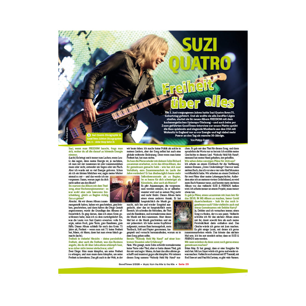 Impressum/Editorial | Inhalt | Aktuelles – Neues aus der Szene | Verstorbene | Shop – GoodTimes | Abo-Bestellschein GoodTimes | Shop – kult! | Shop – Discographien | Abo-Bestellschein kult! | Kleinanzeigen | Wissenswertes | Kreuzworträtsel + Verlosung | Was macht eigentlich …? -Gavin Sutherland – Caro-Josée | Charts 1971 | Runde Geburtstage | Gedenktage | CD/Vinyl-Rezensionen | Buch-Rezensionen | Konzertberichte: Yasi Hofer Trio – The Bros. Landreth | Konzertkalender | Kreuzverhör: Stefan Kleinkrieg | Leserbriefe | ... zuguterletzt: Dan Lucas – Hardline – Tinsley Ellis